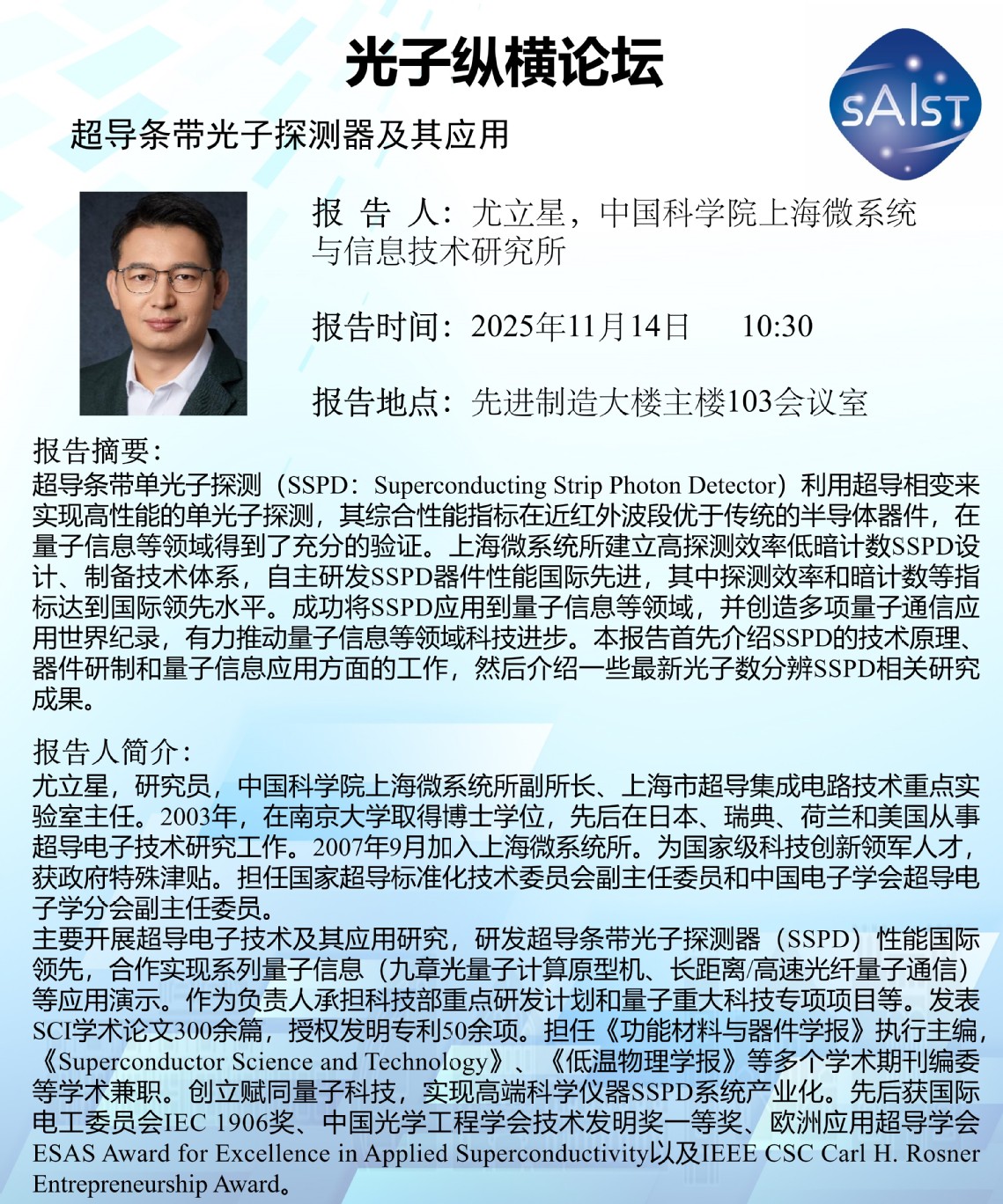 【活动预告】光子纵横论坛—超导条带光子探测器及其应用